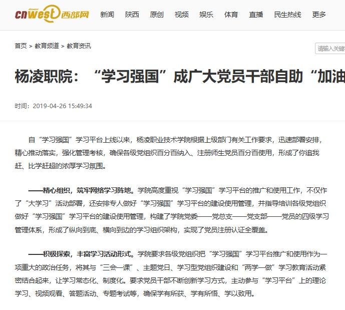 目前,“学习强国”学习平台已经成为杨凌职院党员干部、教师学生的自助“加油站”。通过学习研讨,大家深感习近平新时代中国特色社会主义思想进一步入脑入心、扎根开花,理论学习成果指导工作实践成效初显。(文/陆敏)